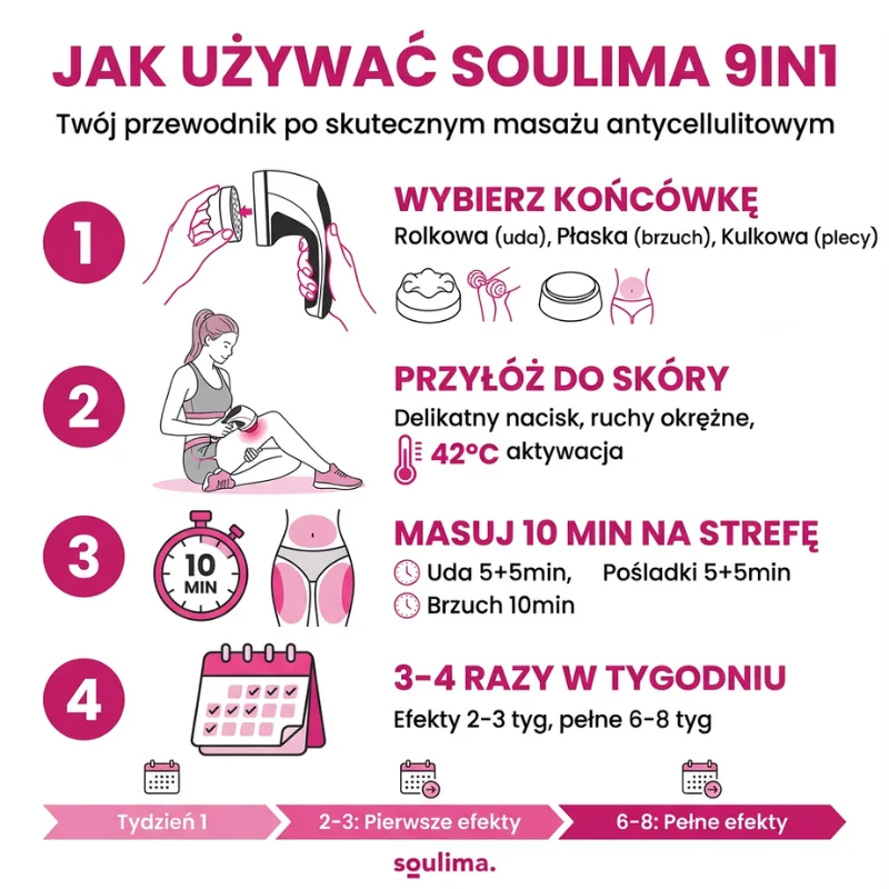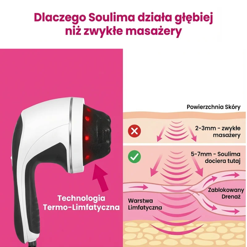 Soulima 9w1 to przełomowe urządzenie wykorzystujące tę samą technologię termo-limfatyczną, którą znajdziesz w profesjonalnych salonach beauty za 300-400zł/zabieg.